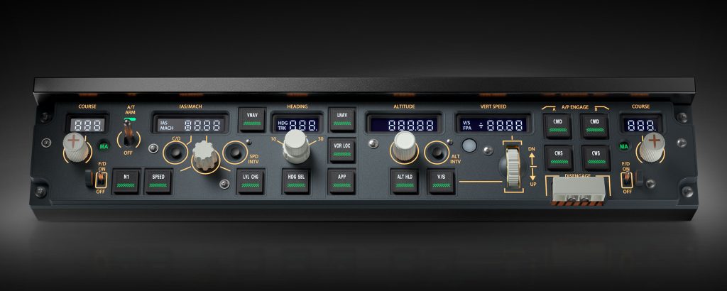 The Boeing MCP features separate knobs and buttons for speed, heading, altitude, and vertical modes. Each function is explicitly selected, and changes are displayed on the Flight Mode Annunciator (FMA). This design emphasizes pilot authority and clarity: every mode must be chosen deliberately. Pilots manually manage transitions between modes such as VNAV, FLCH, and HDG, giving them direct control but also requiring more attention to mode selection.
