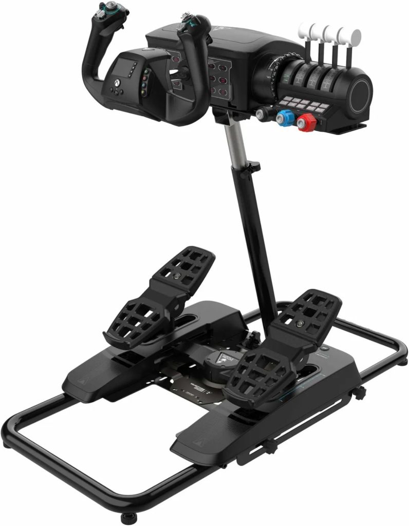 The Turtle Beach VelocityOne Universal Stand is a solid, steel-built platform designed to support flight simulation or racing simulation peripherals like yokes, wheels, pedals and rudder pedals. Its compatibility is broad: it is purpose-made for Turtle Beach’s own VelocityOne Flight Universal Control System and VelocityOne Universal Rudder Pedals, but also supports many third-party accessories thanks to universal slotted holes and pre-drilled mounting points.